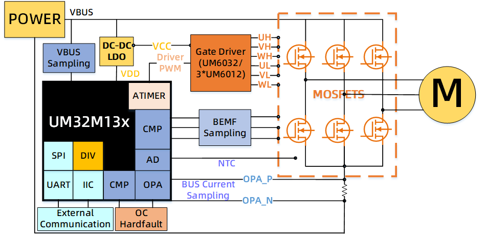 內(nèi)置3路比較器快速直接獲取反電勢(shì)信號(hào)